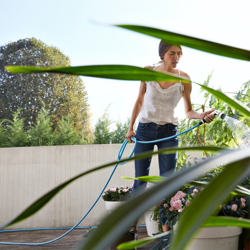 Set mit leichtem, farbigem dehnbarem Schlauch, Schlauchverbindern und Multijet-Gießpistole, Adapter für Wasserhähne und Halterung zum Aufhängen